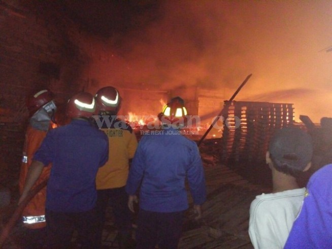 "Pulang dari acara malam ningguan kami melihat api sudah membesar di bagian atap gudang. Makanya kami spibtan berlari membangunkan korban," ujar Mat 1Rifai.