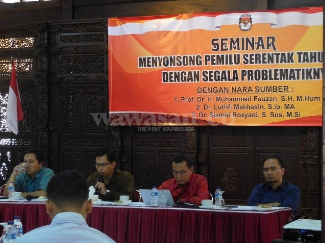 Demikian disampaikan Guru Besar Fakultas Hukum Universitas Jenderal Soedirman (Unsoed) Purwokerto, Muhammad Fauzan, saat menjadi pembicara dalam seminar “Menyongsong Pemilu Serentak Tahun 2017 dengan Segala Problematikanya” yang diselenggarakan Komisi Pemilihan Umum Purbalingga di Andrawina Owabong Cottage, Kamis (19/10).