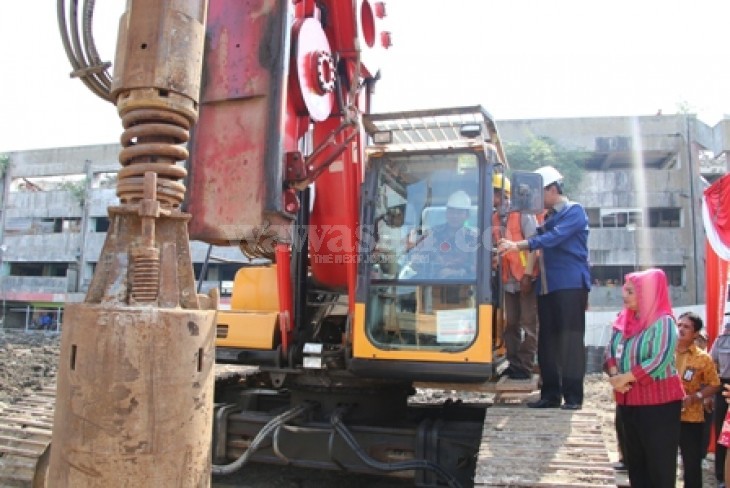 Secara simbolis didampingi Wawali Hevearita G Rahayu, Walikota Hendrar Prihadi mengoperasikan alat berat menandai dimulainya pembangunan Pasar Johar baru yang akan dilakukan dalam beberapa tahun mendatang. Foto: Nurul Wakhid