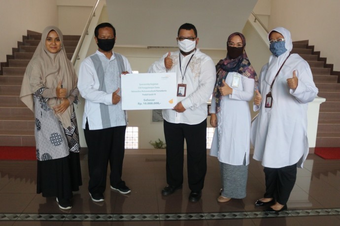 PURWOKERTO, WAWASANCO- Bank Syariah Mandiri (BSM) Cabang Purwokerto perkuat kerjasama dengan Universitas Muhammadiyah Purwokerto (UMP), Banyumas, melalui penyaluran Sponsorship Kegiatan CSR UMP Peduli Covid 19 sebesar 10 juta rupiah.