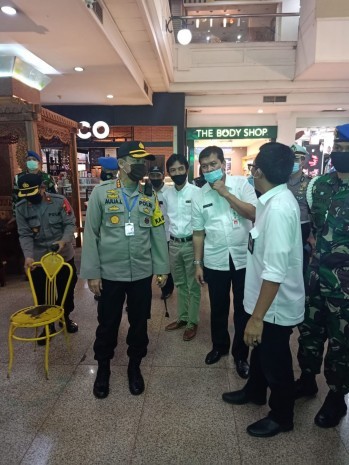 Petugas kepolisian, TNI dan Dinkeas Semarang melakukan pemantauan dan Rapid Tes di sejumlah Mall di Semarang. (Foto ;ist)