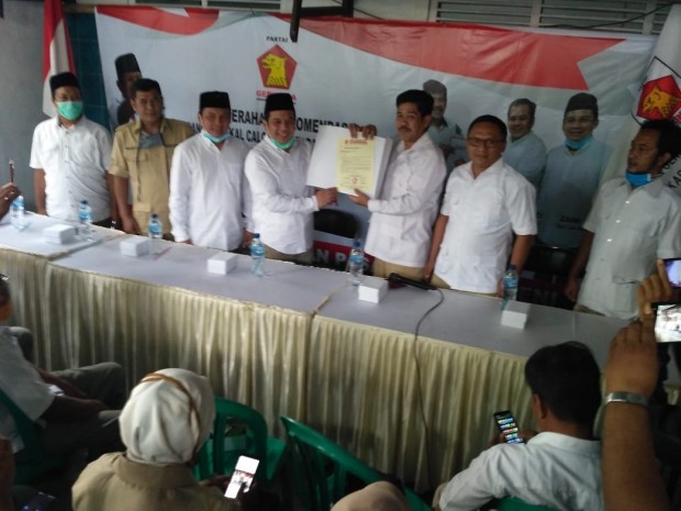 Pasangan Oji-Jeni menerima rekomendasi dari Partai Gerindra yang diserahkan Ketua DPC Partai Gerindra Purbalingga Adi Yuwono. (Foto :dok)