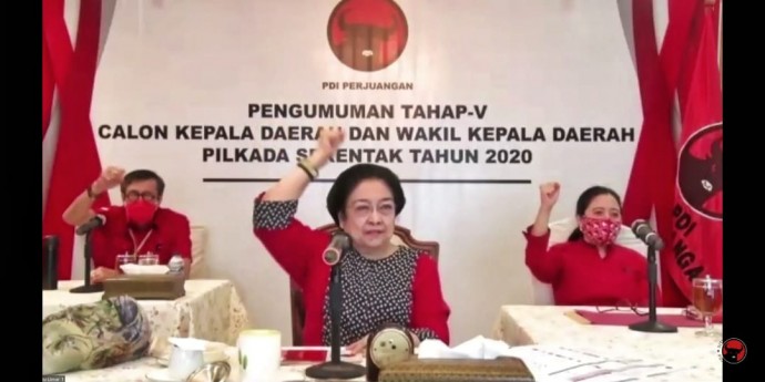 Dalam rapat secara virtual yang dipimpin Ketua Umum Megawati Soekarnoputri dan Sekjen Hasto Kristiyanto, Selasa (2/9/2020), Ketua DPP PDIP bidang politik Puan Maharani membacakan lalu menyapa para pasangan calon tersebut.