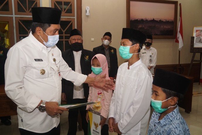 Santunan yang disalurkan melalui Badan Amil Zakat Nasional (Baznas) kali ini sebagai bagian dari penanggulangan dampak pandemi covid-19. Bupati mengatakan, saat ini kita sedang mengalami gelombang cukup luar biasa, karena adanya peningkatan terkonfirmasi positif Covid-19. Kenaikan itu di Kabupaten Magelang masih sangat tinggi. Untuk iyuti, penerapan protokol kesehatan itu menjadi faktor yang penting untuk disosialisasikan kepada masyarakat.