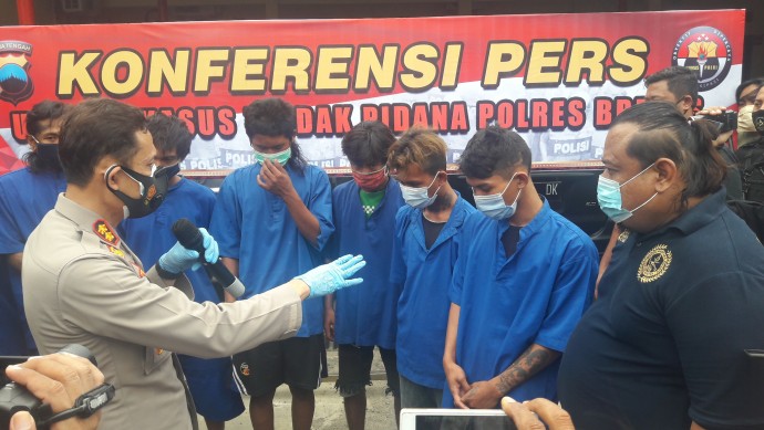 BREBES, WAWASQNCO - Jajaran Resmob Satuan Reskrim Polres.Brebes berhasil meringkus tujuh pelaku pembunuhan terhadap Rangga Putra Dewa alias Baging (18), seorang anak punk warga Dusun 1 Desa Pecangakan RT 03 RW 01, Kecamatan Comal, Kabupaten Pemalang. Sementara satu pelaku.pembunuhan lainnya, yakni Ferdiansyah alias Ipang masih buron dan masuk dalam daftar pencarian orang (DPO).