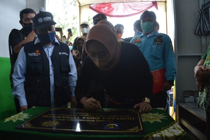 PURBALINGGA, WAWASANCO- Bupati Purbalingga Dyah Hayuning Pratiwi SE BEcon MM resmikan Hunian Sementara (Huntara) untuk para keluarga yang terdampak bencana tanah bergerak di Dusun Pagersari Desa Tumanggal, Kecamatan Pengadegan, Ahad (28/2). Huntara ini dibangun dekat lokasi wisata Sari Land yang dikelola oleh desa.