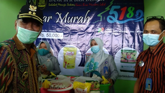Seperti dilakukan pemerintah daerah dalam hal ini Dinas Perdagangan Koperasi dan UMKM Kabupaten Demak di Desa Mlaten Kecamatan Mijen, Selasa (23/3). Selain menggelar pasar murah dalam rangka meringankan beban masyarakat terdampak covid-19, diresmikan pula pasar desa yang dibangun dengan bantuan Kementerian Koperasi RI.