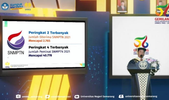 "Sampai saat ini tercatat 50 Program Studi pada jenjang S1 memeroleh akreditasi A dan 11 Program Studi memeroleh akreditasi A pada jenjang Pascasarjana. Pada Seleksi Nasional Masuk Perguruan Tinggi Negeri (SNMPTN) 2021 ini, Unnes menjadi perguruan tinggi terfavorit ke-4 secara nasional. Jumlah pendaftar SNMPTN ke Unnes mencapai 40 ribu, mengalami kenaikan lebih dari 16 ribu dibanding tahun lalu," paparnya.