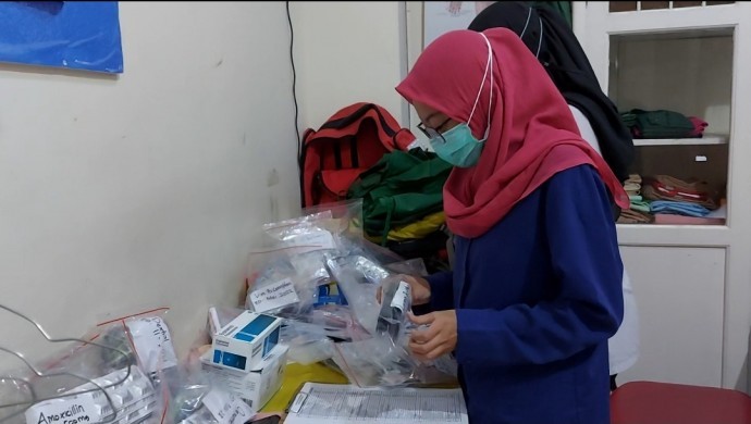 Seorang relawan menyiapkan obat obatan yang akan dibawa ke daerah bencana di NTT dan NTB (Dok/PMI Solo)