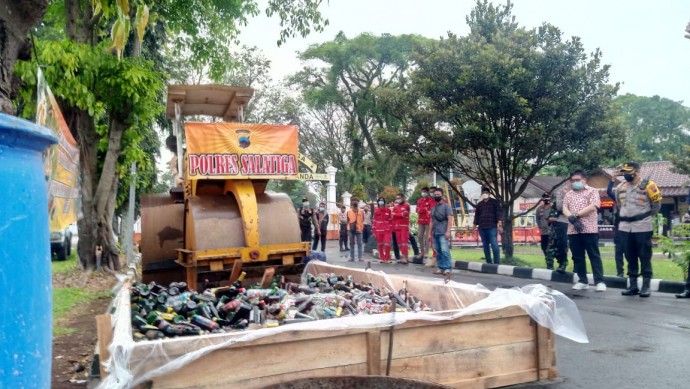 Sebelumnya, pemusnahan dipusatkan di Lapangan Polres Salatiga, dilakukan dengan cara dihancurkan dengan alat berat dan disiram dengan air. Pemusnahan ini pun, dituangkan dalam Berita Acara Pemusnahan Barang Bukti ini.