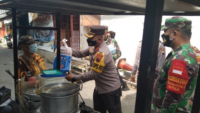 "Berdasarkan hasil analisa kami PKL-lah paling terdampak sejak diterapkannya PPKM Darurat. Pembatasan jam operasional praktis menjadikan pendapatan mereka turun. Maka itu kami TNI Polri bersinergi patroli dan turun langsung menyemangati mereka agar tak putus asa menghadapi pandemi," kata Kapolres Andhika, Jumat (16/7).