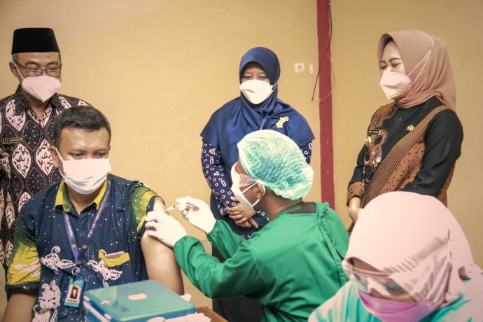 PURBALINGGA, WAWASANCO- Sebanyak 784 pelaku jasa keuangan di Kabupaten Purbalingga menjalani vaksinasi massal Covid-19. Kegiatan dilaksanakan mulai Kamis (22/7/2021) hingga Jumat (23/7/2021) di Gedung Korpri.