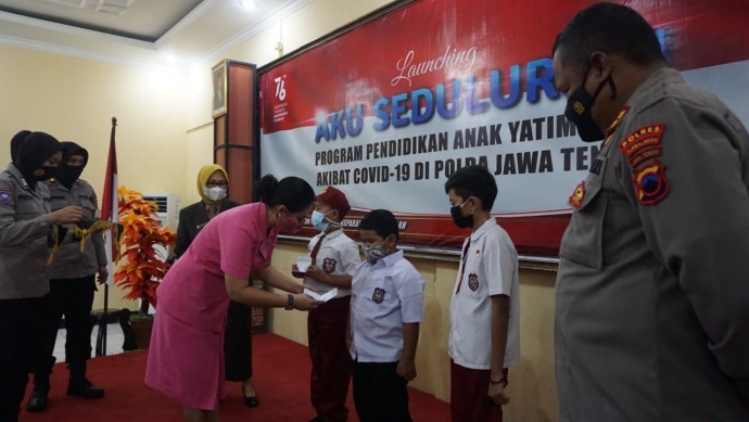 Para anak yatim piatu akibat Covid-19 di Purbalingga menerima bantuan pendidikan untuk satu tahun. Secara simbolis Kapolres Purbalingga AKBP Fannky Ani Sugiharto beserta Ketua Bhayangkari dan Forkopimda menyerahkan buku tabungan pendidikan kepada perwakilan anak yatim piatu yang hadir.