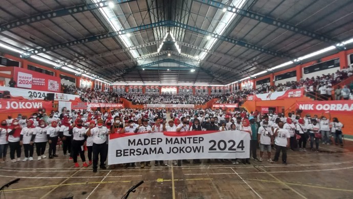 PURWOKERTO, WAWASANCO- Sekitar 3.000 relawan pendukung Jokowi, Minggu (27/3/2022) menggelar silaturahmi yang disertai deklarasi ‘Madep Mantep 2024 Bersama Jokowi’. Acara dilaksanakan di GOR Satria Purwokerto.