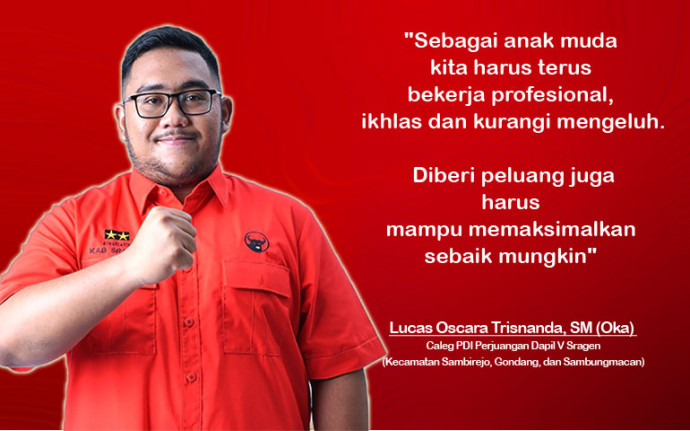 SEMARANG, WAWASANCO - DI usianya yang terbilang masih muda, Lucas Oscara Trisnanda, SM, mantap memilih jalur politik untuk membantu dan memperjuangkan masyarakat luas. Oka sapaan akrabnya maju sebagai calon legislatif dari PDI Perjuangan Dapil V Kabupaten Sragen, Jawa Tengah, pada Pemilu 2024 mendatang.