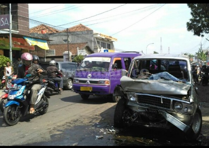 Informasi yang dihimpun Wawasan peristiwa teesebut bermula ketika mobil kijang bernopol K 8208 DB melaju dari arah barat ketika kondisi lalu lintas cukup ramai.