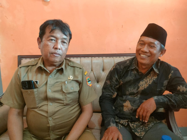 BERI KETERANGAN : Kepala Sekolah Drs Arif Nuradi MM bersama Ketua Komite Sekolah, H Suhada Alabib memberikan keterangan terkait tidak ada pungutan di SMP Negeri 2 Larangan, Senin (15/9/2025). Foto. Eko Saputro/wawasan.co