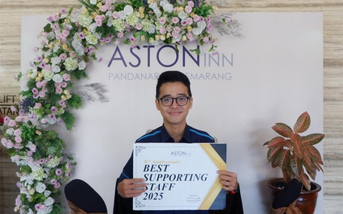 Sebagai puncak dari perayaan ini, manajemen Aston Inn Pandanaran Semarang memberikan penghargaan *Best Supporting Staff 2025* kepada Tan Juan Michael Wisley. Penghargaan ini diberikan atas dedikasi, loyalitas, dan konsistensi kinerja Tan Juan, yang dinilai telah memberikan kontribusi positif dalam mendukung operasional hotel sehari-hari dan mencerminkan nilai-nilai profesionalisme serta pelayanan prima yang menjadi komitmen hotel.