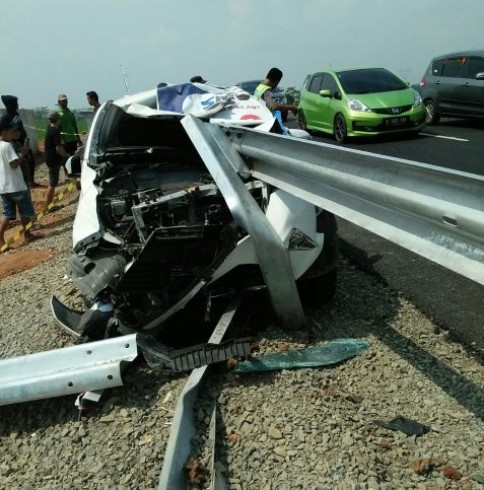 KAJEN - Diduga mengantuk dan melaju dengan kecepatan cukup tinggi akibat jalur tol fungsional sepi, mobil pemudik bernopol A 1766 FR menabrak pagar pembatas jalan tol fungsional ruas Pemalang - Batang di KM 325, Desa Sijeruk, Kecamatan Sragi, Kabupaten Pekalongan, Jumat (22/6). Tiga penumpang mengalami luka ringan dan seorang lagi mengalami luka berat. Keempat pemudik dari Madiun, Jawa Timur, menuju ke Serang, Banten ini dilarikan ke RSUD Kraton, Kabupaten Pekalongan.