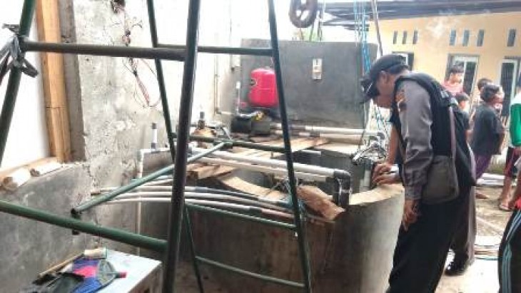 Anggota polisi memeriksa sumur milik Awal Supriyanto (30) warga Desa Limbangan RT. 5 RW. 3 Kecamatan Kutasari, Purbalingga. Satu orang tewas dan dua orang lainnya dilarikan ke RS saat membersihkan sumur tersebut. (Foto :Joko Santoso)