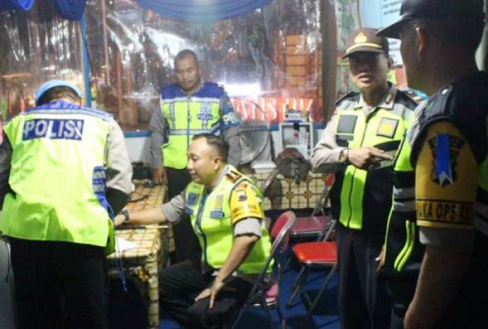 Kapolres AKBP Antonius Anang diampingi Wakapolres Kompol Samdani, aktif memantau dan nyambangi anggotanya di pos-pos Lebaran. Foto : Wahono